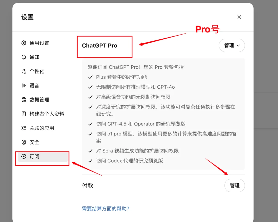 - 只有已订阅 Plus/Pro 计划的用户才会在设置中看到“订阅”选项;