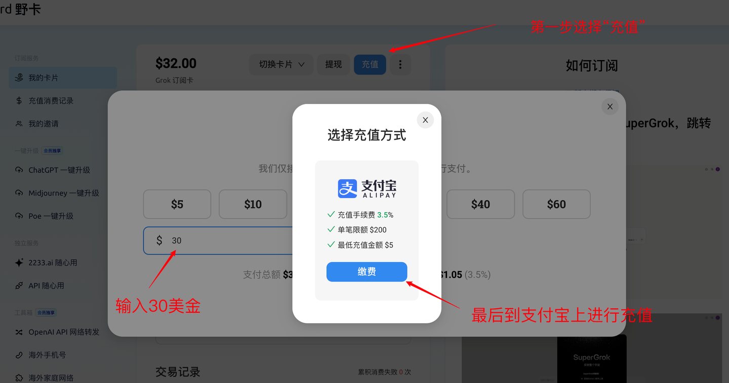 提示: 若仅需体验 Grok4,30美元基础版已足够。