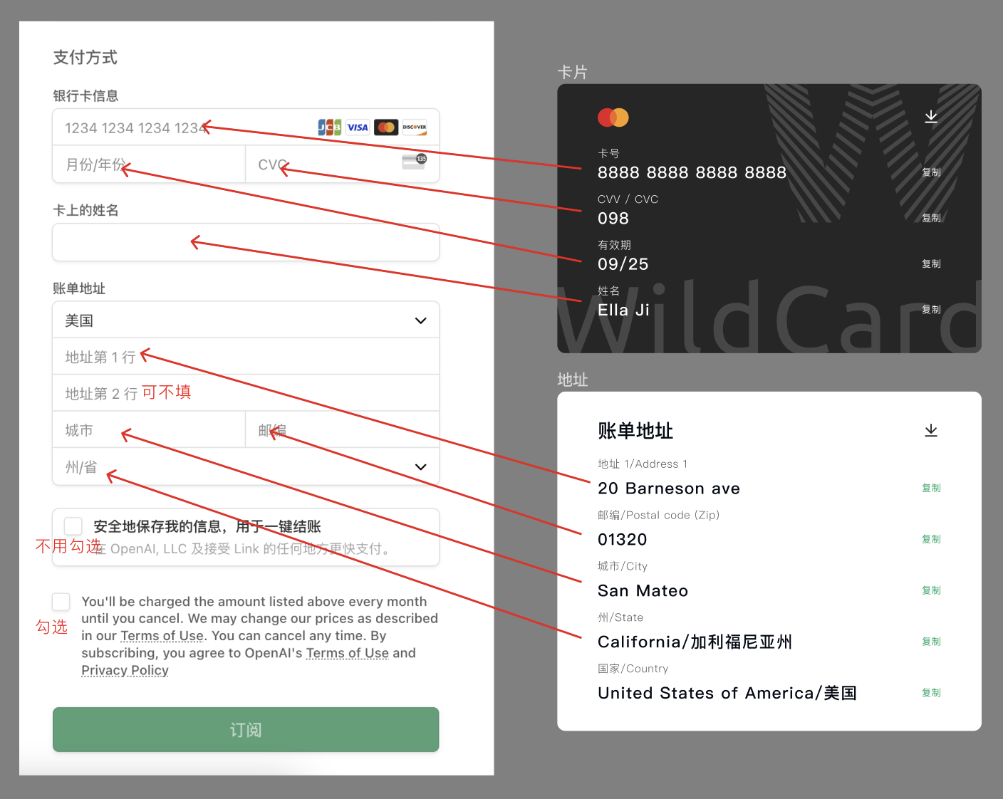 点击「Subscribe」按钮,系统将弹出支付信息填写窗口。