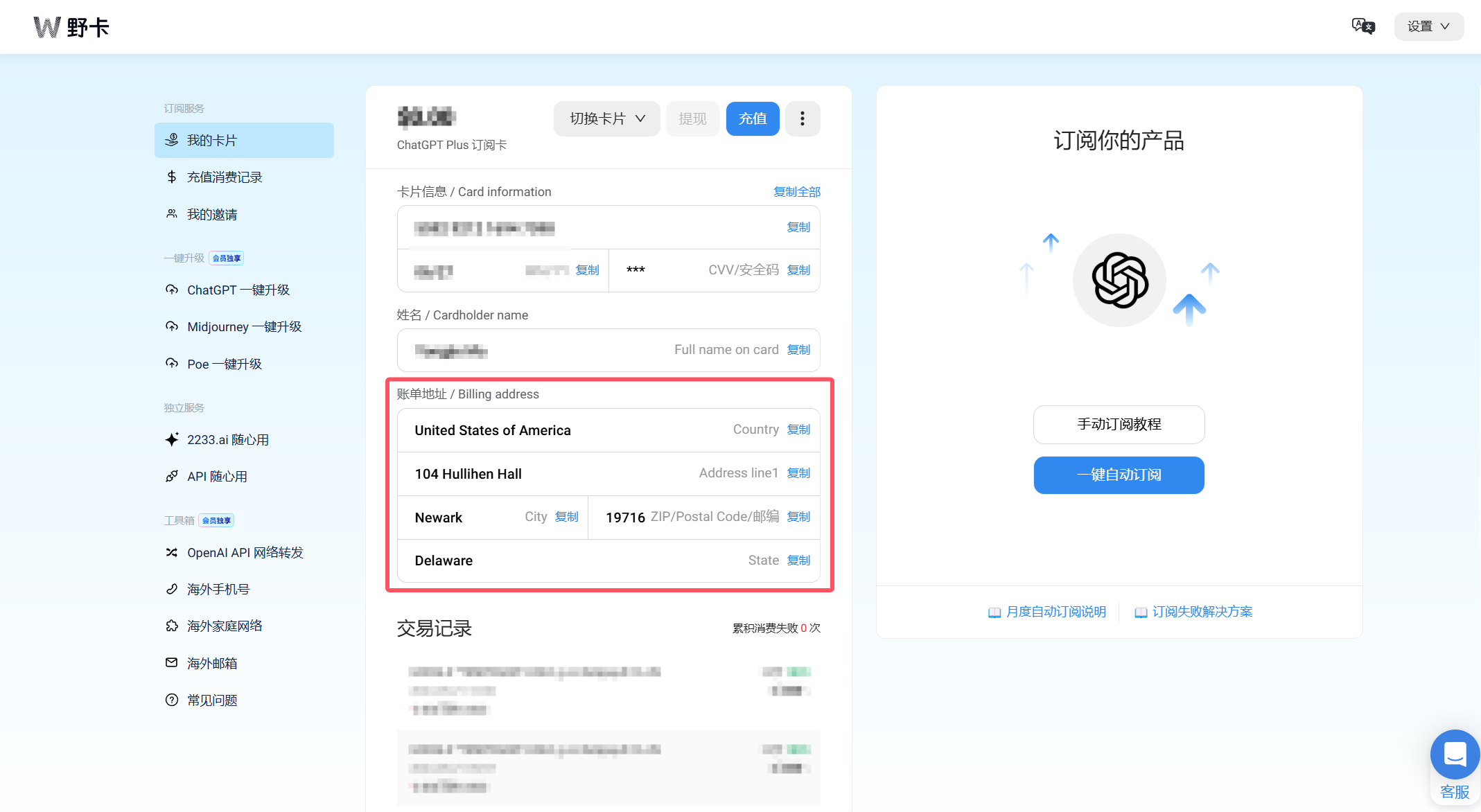 → 确认使用美国发行的虚拟卡(野卡最新卡库 (opens new window))