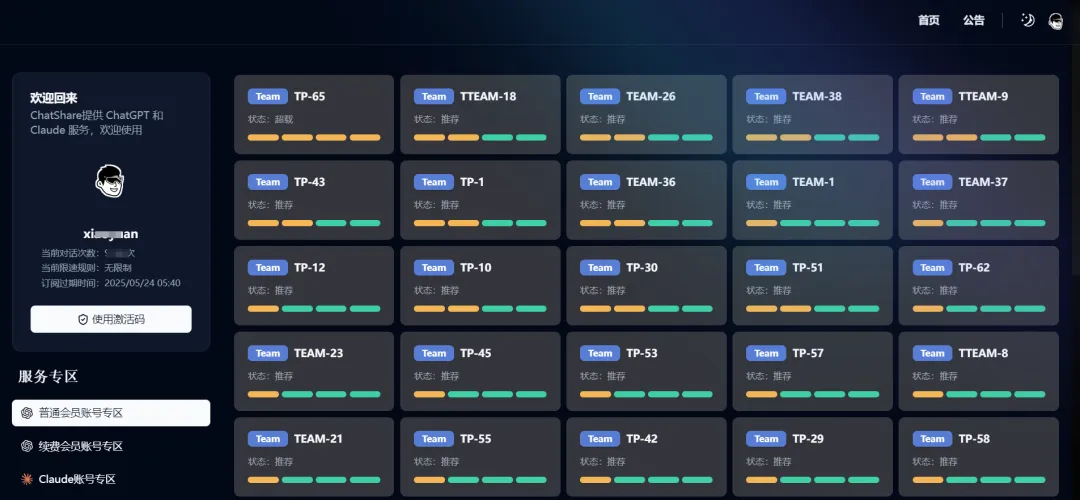 200+在线共享账号池状态可视化,智能负载均衡确保流畅体验